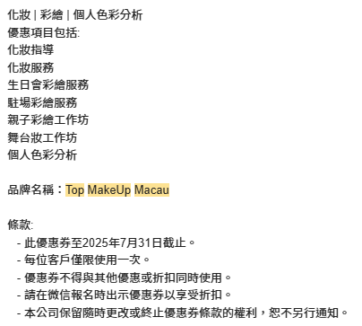 除商戶特別標明外,優惠不可與同一個品牌的其他優惠同時使用;